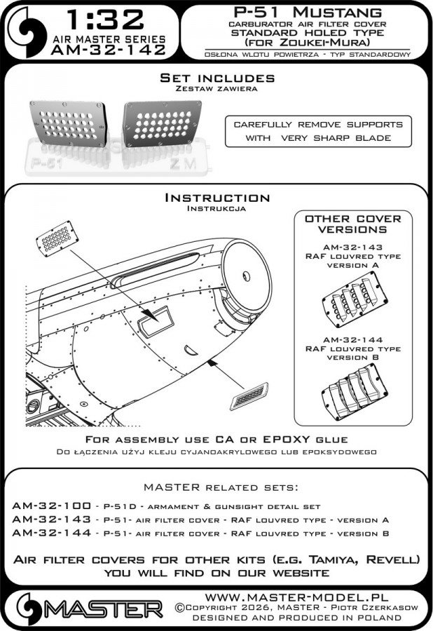 P-51 Mustang - carburator air filter cover - RAF louvred type - version A (for Zoukei-Mura)
