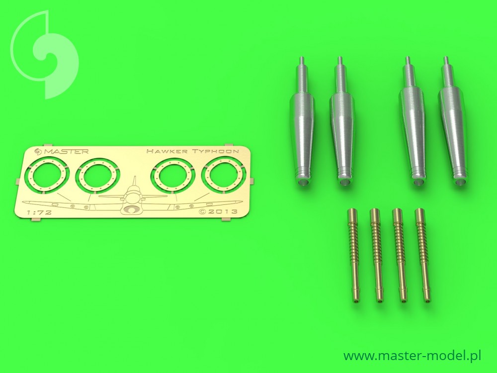 The set includes turned aluminum barrels, brass guns and etched rings.