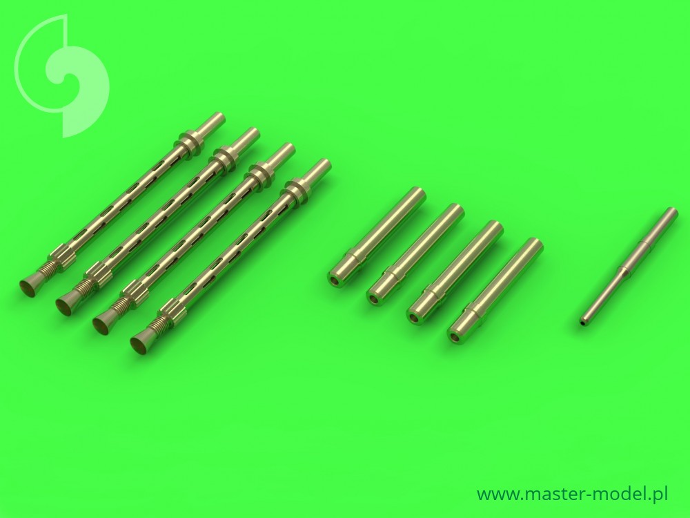 The set includes turned brass Browning .303 barrels with sloted cooling jacket, Hispano 20mm barrel tips and Pitot Tube.