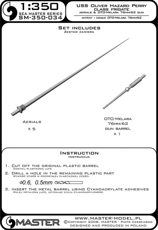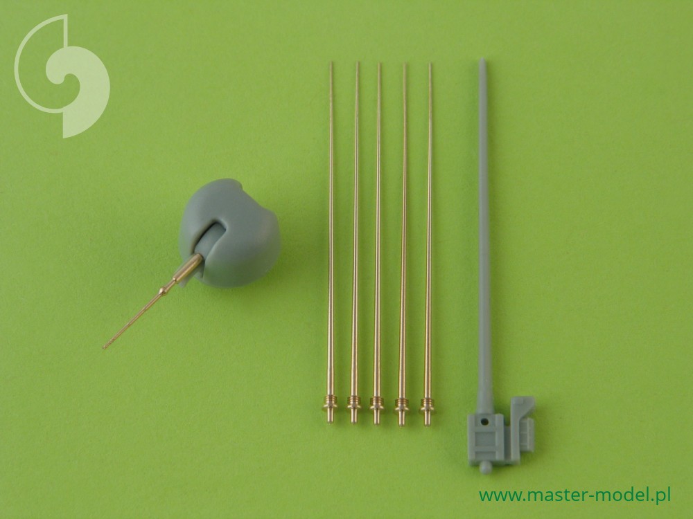 Set includes turned brass aerials and gun barrel. It is very simple to use in Your model, and makes it extremely realistic. Simply cut off the original plastic parts and drill a hole in the remaining part. Insert the metal barrel using Cyanoacrylate adhesives.