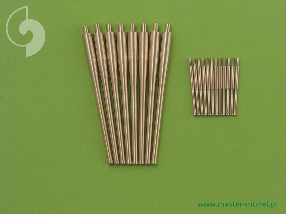 The set includes turned brass barrels. It is very simple to use in Your model, and makes it extremely realistic. Simply cut off the original plastic barrel and drill a hole in the remaining part and insert the metal barrel using Cyanoacrylate adhesives.