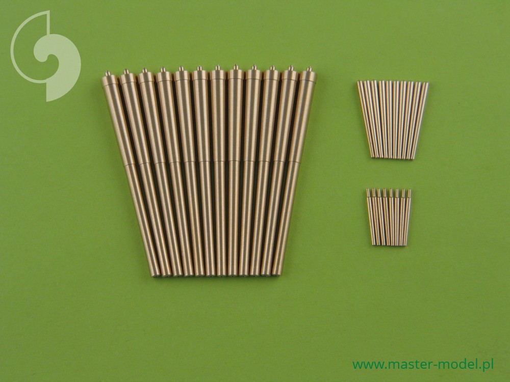 The set includes turned brass barrels. It is very simple to use in Your model, and makes it extremely realistic. Simply cut off the original plastic barrel and drill a hole in the remaining part and insert the metal barrel using Cyanoacrylate adhesives.