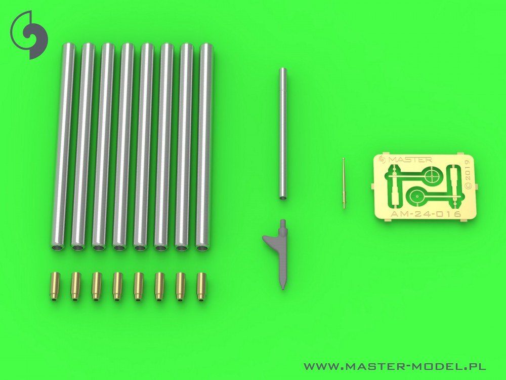 The set includes turned aluminum and brass Browning .50 blast tubes. Also turned, resin and photoetched parts for Pitot Tube and gunsight