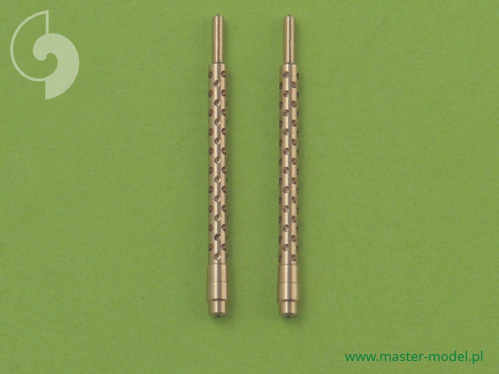 Used in many fighters and bombers The set includes two turned brass barrels with drilled cooling jacket. It is very simple to use in Your model, and makes it extremely realistic. Simply cut off the original plastic barrel and drill a hole in the remaining plastic parts and insert the metal barrel using Cyanoacrylate adhesives.
