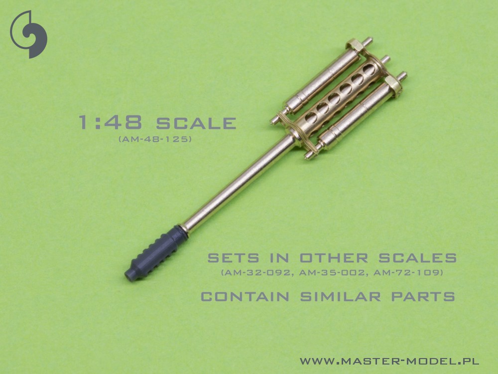 The set includes turned brass tail antenna, barrel, Pitot Tubes, resin muzzle brake and PE parts.