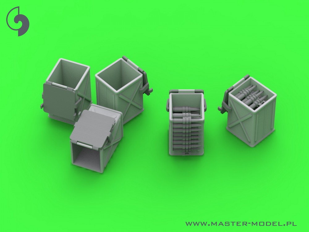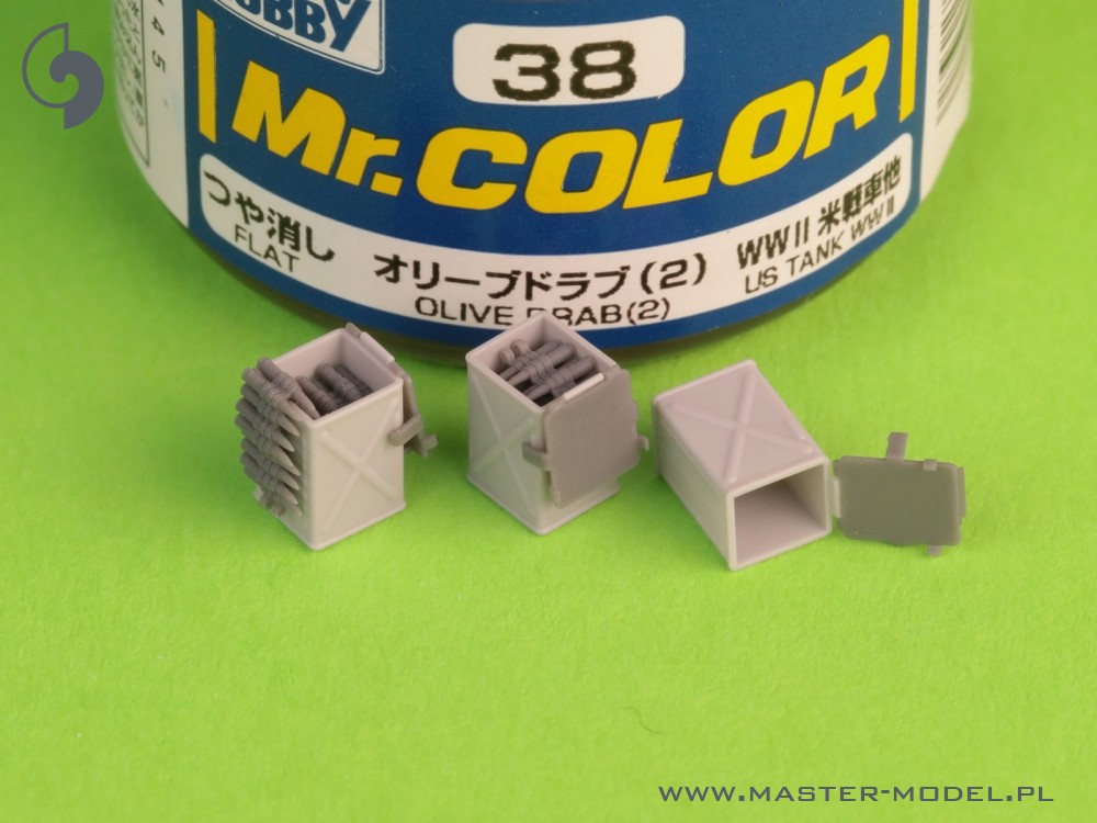The set includes casted and 3D printed resin parts for opened 50 round (D68375) ammo cans.