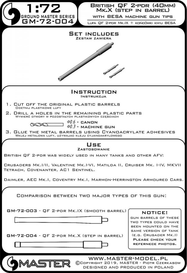 British QF 2-pdr (40mm) - version Mk.X (step in barrel) + Besa MG tips - for Crusader Mk.I/II, Valentine, Matilda II, and other AFV