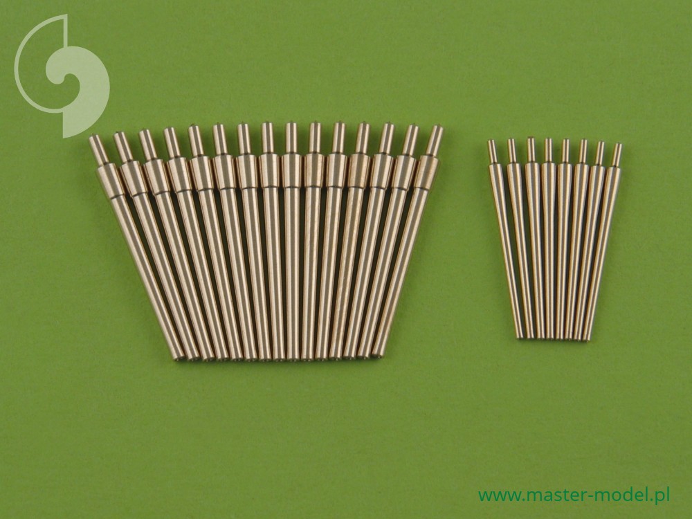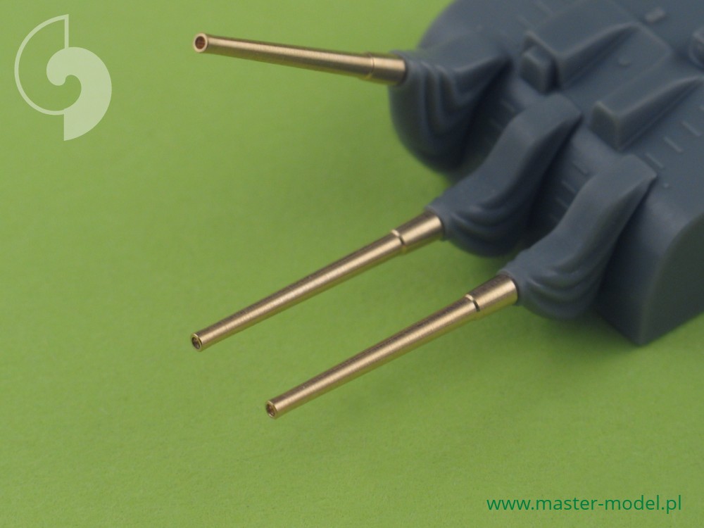 The set includes turned brass barrels. It is very simple to use in Your model, and makes it extremely realistic. Simply cut off the original plastic barrel and drill a hole in the remaining part and insert the metal barrel using Cyanoacrylate adhesives.