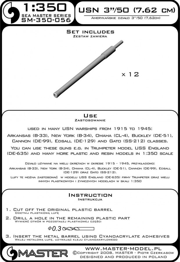 You can use these guns e.g. in Trumpeter model USS England (DE-635) and many more plastic and resin models in 1:350 scale
