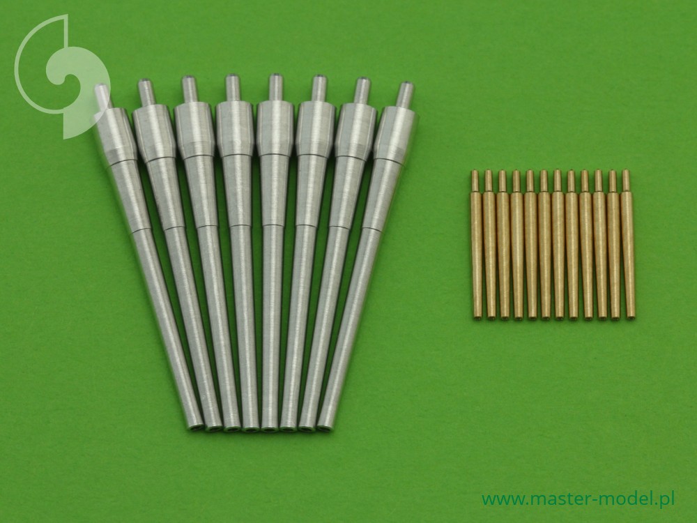 The set includes turned aluminum and brass barrels. It is very simple to use in Your model, and makes it extremely realistic. Simply cut off the original plastic barrel and drill a hole in the remaining part and insert the metal barrel using Cyanoacrylate adhesives.