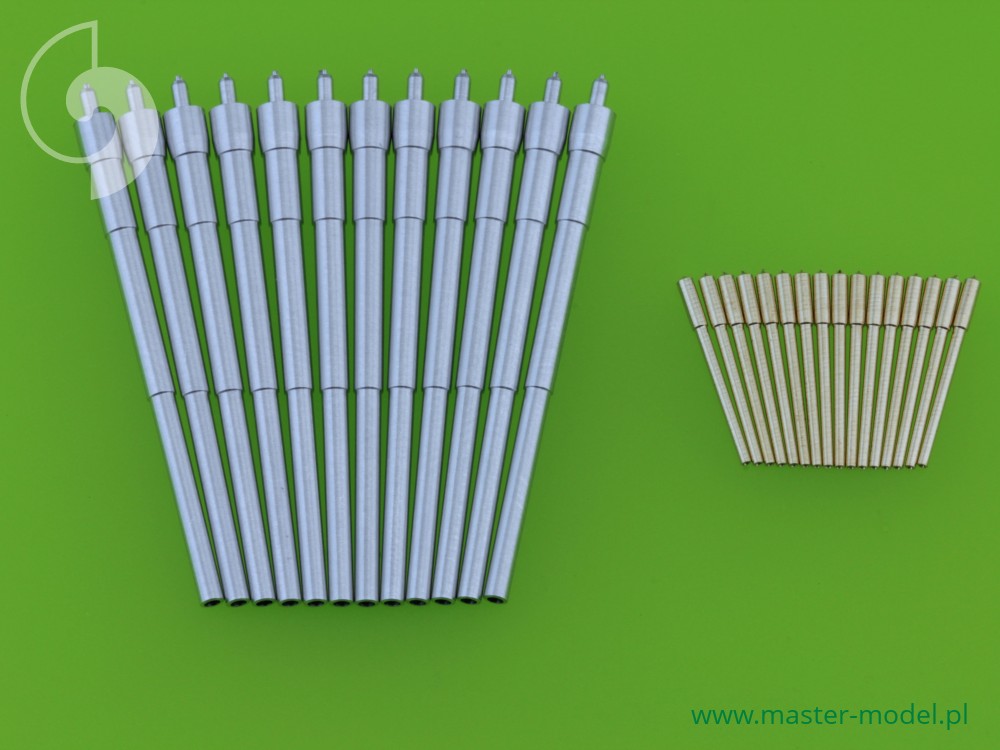 The set includes turned aluminum and brass barrels. It is very simple to use in Your model, and makes it extremely realistic. Simply cut off the original plastic barrel and drill a hole in the remaining part and insert the metal barrel using Cyanoacrylate adhesives.