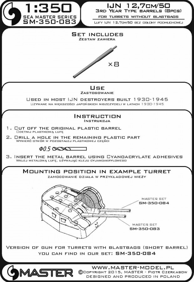 It is very simple to use in Your model, and makes it extremely realistic. Simply cut off the original plastic barrel and drill a hole in the remaining plastic parts and insert the metal barrel using Cyanoacrylate adhesives.