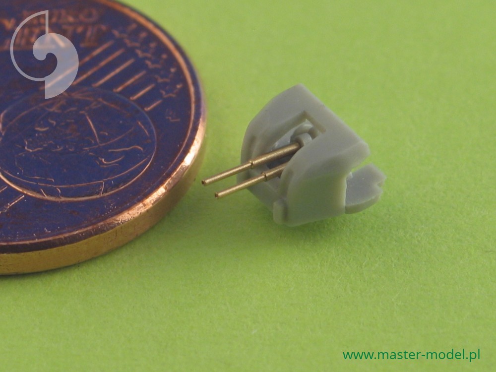 The set includes turned brass barrels. It is very simple to use in Your model, and makes it extremely realistic. Simply cut off the original plastic barrel and drill a hole in the remaining part and insert the metal barrel using Cyanoacrylate adhesives.