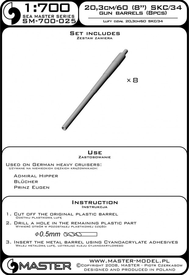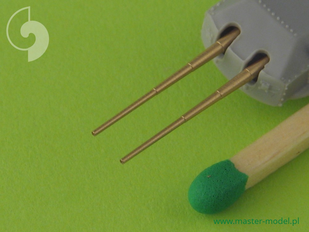 The set includes turned brass barrels. It is very simple to use in Your model, and makes it extremely realistic. Simply cut off the original plastic barrel and drill a hole in the remaining part and insert the metal barrel using Cyanoacrylate adhesives.