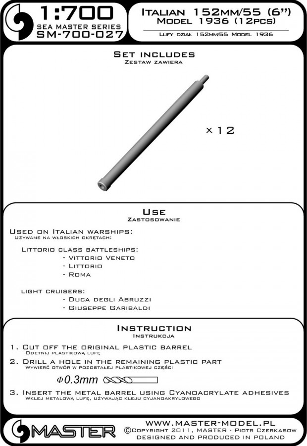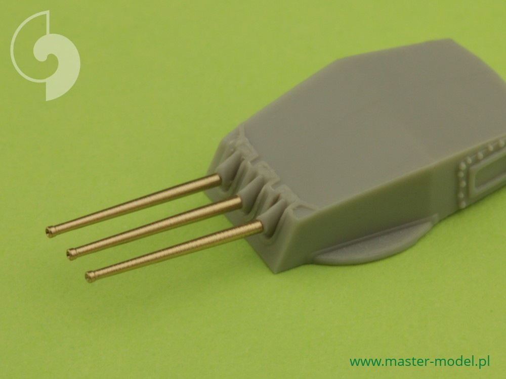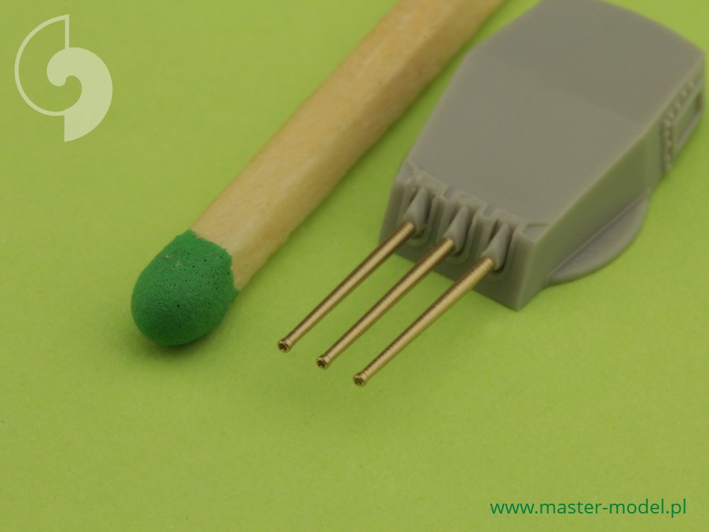 The set includes turned brass barrels. It is very simple to use in Your model, and makes it extremely realistic. Simply cut off the original plastic barrel and drill a hole in the remaining part and insert the metal barrel using Cyanoacrylate adhesives.