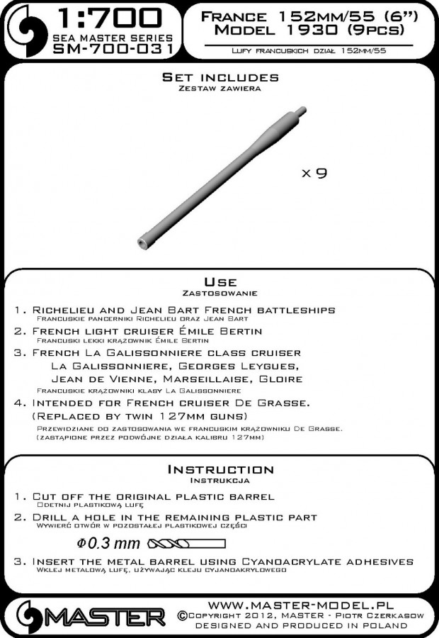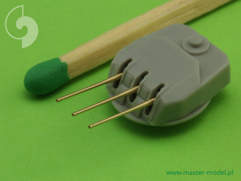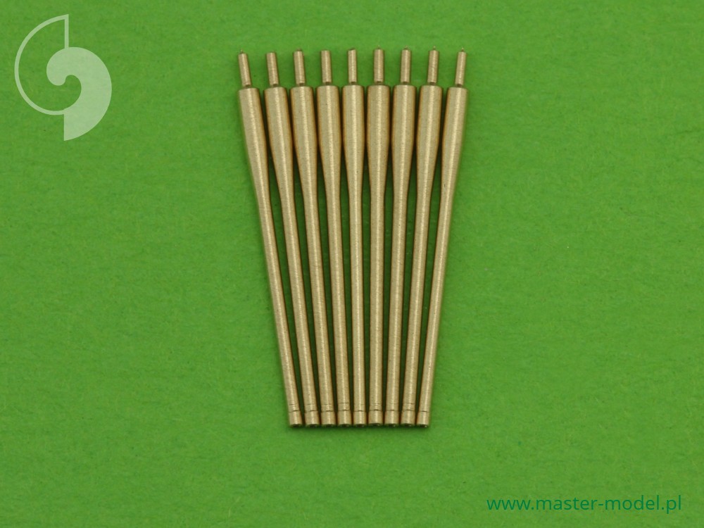 The set includes turned brass barrels. It is very simple to use in Your model, and makes it extremely realistic. Simply cut off the original plastic barrel and drill a hole in the remaining part and insert the metal barrel using Cyanoacrylate adhesives.