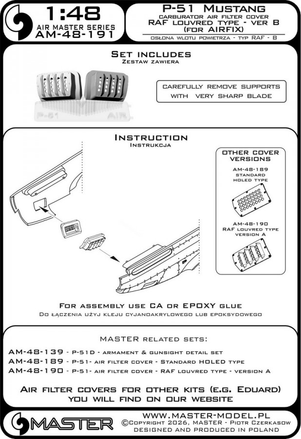P-51 Mustang - carburator air filter cover - RAF louvred type - version B (for Airfix)