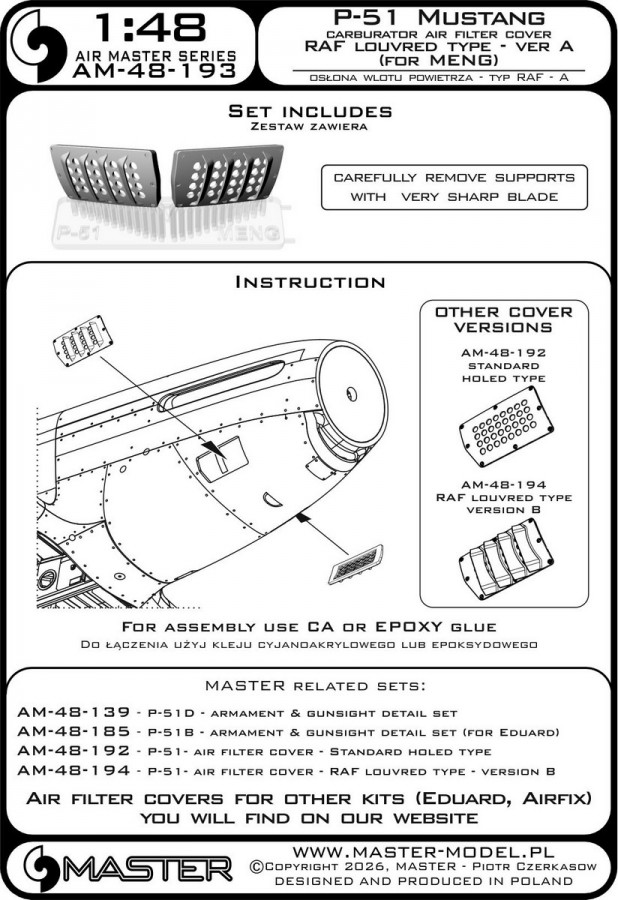 P-51 Mustang - carburator air filter cover - RAF louvred type - version B (for Meng)